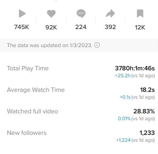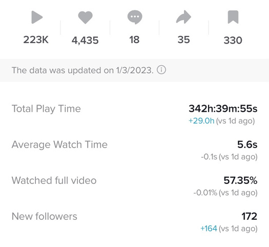 Here are the analytics of some of my recent videos that have gotten attention throughout my TikTok accounts